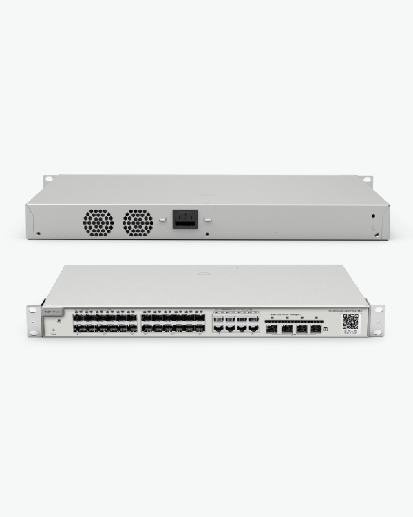 24-Port SFP L3 Managed 10G Switch, 24 SFP Slots, 8 Gigabit RJ45 Combo Ports,4 *10G SFP+ Slots,19-inch Rack-mountable Steel Case, Static Routing is a Ruijie business network switch designed for high-reliability LAN connectivity, PoE endpoint power, and structured campus/branch deployments. Secure Africa Solutions delivers these switches for secure network growth.